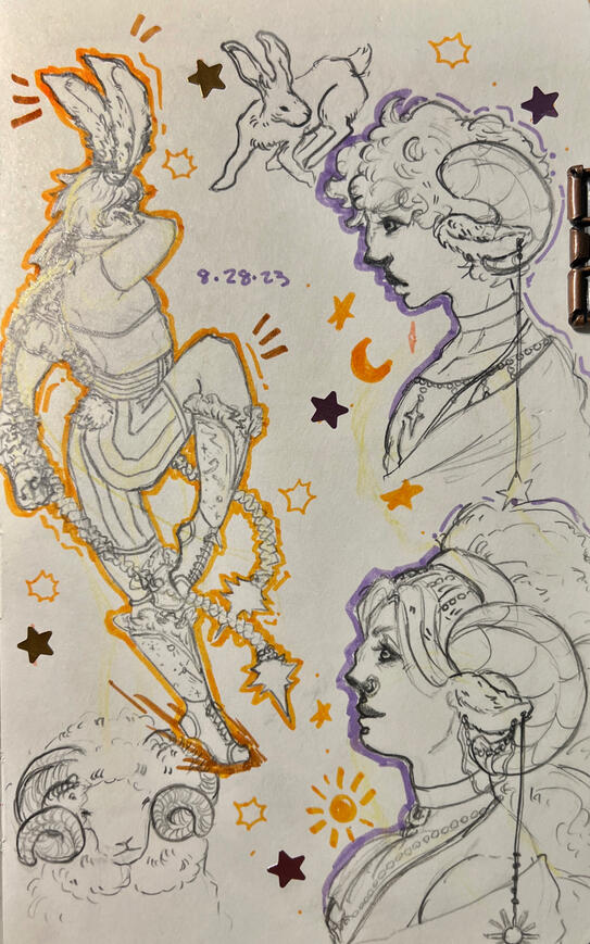 i mainly do digital illustrations that will typically feature a character as the main subject, added with ornamental framing. lately, i've been experimenting with relief printing and book arts, both of which i'm excited to continue working with!in my free time i enjoy reading, playing video games & table-top games, spending time with friends & family, and learning new skills. some skills i'm currently working on are speaking spanish, sign language, and playing the guitar \o/